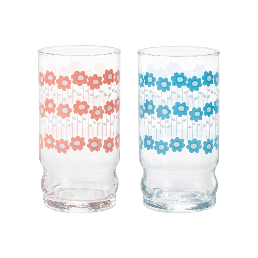 代表的な商品の一つは、花や動物など、かわいらしい柄をあしらったプリントグラスです。