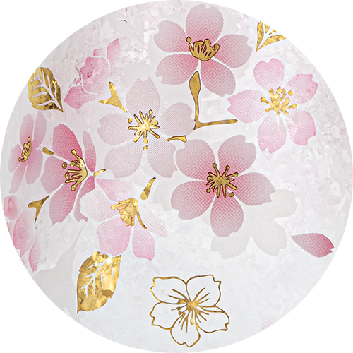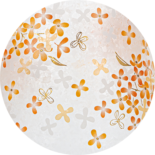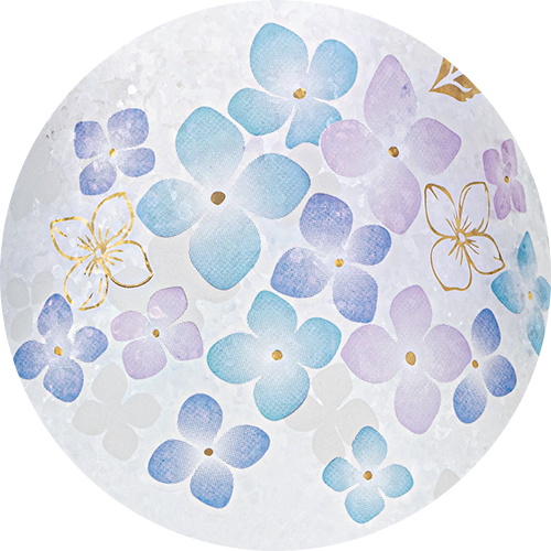 グラデーションが、みぞれ仕上げと金彩の煌めきによって、上品に映えるデザインです。